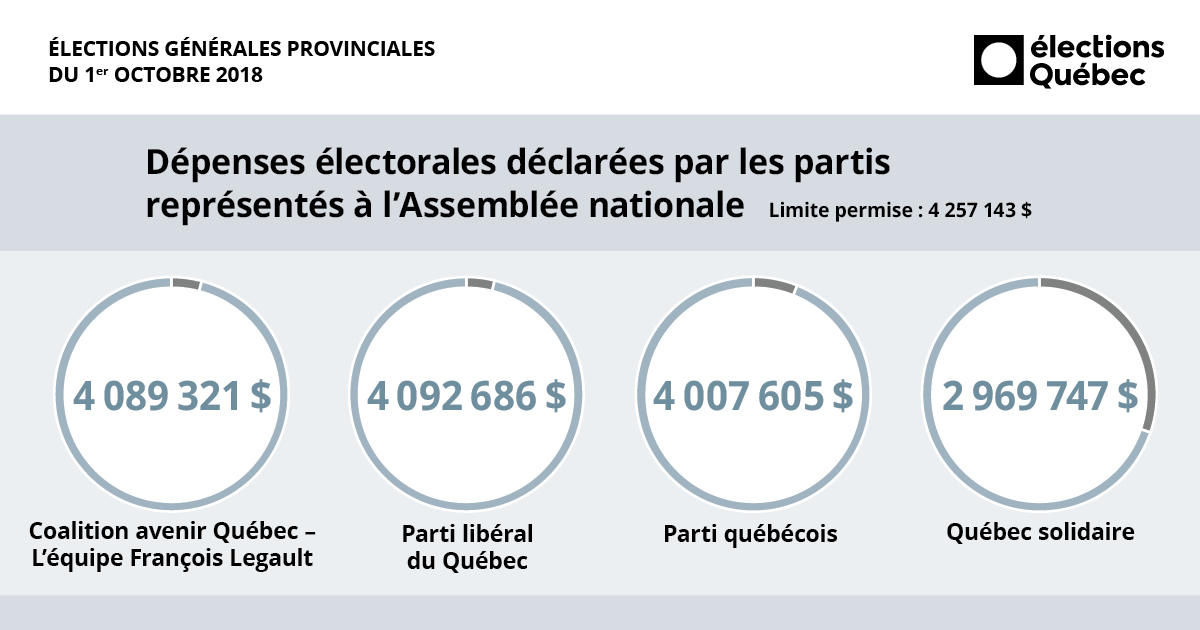 Nous rendons public le sommaire des rapports de dépenses électorales de tous les partis politiques et de toutes les personnes candidates en lice lors des élections générales du 1er octobre 2018. Il s’agit d’un document présentant les chiffres contenus dans les rapports qui nous ont été soumis. Nous illustrons ici quelques faits saillants.