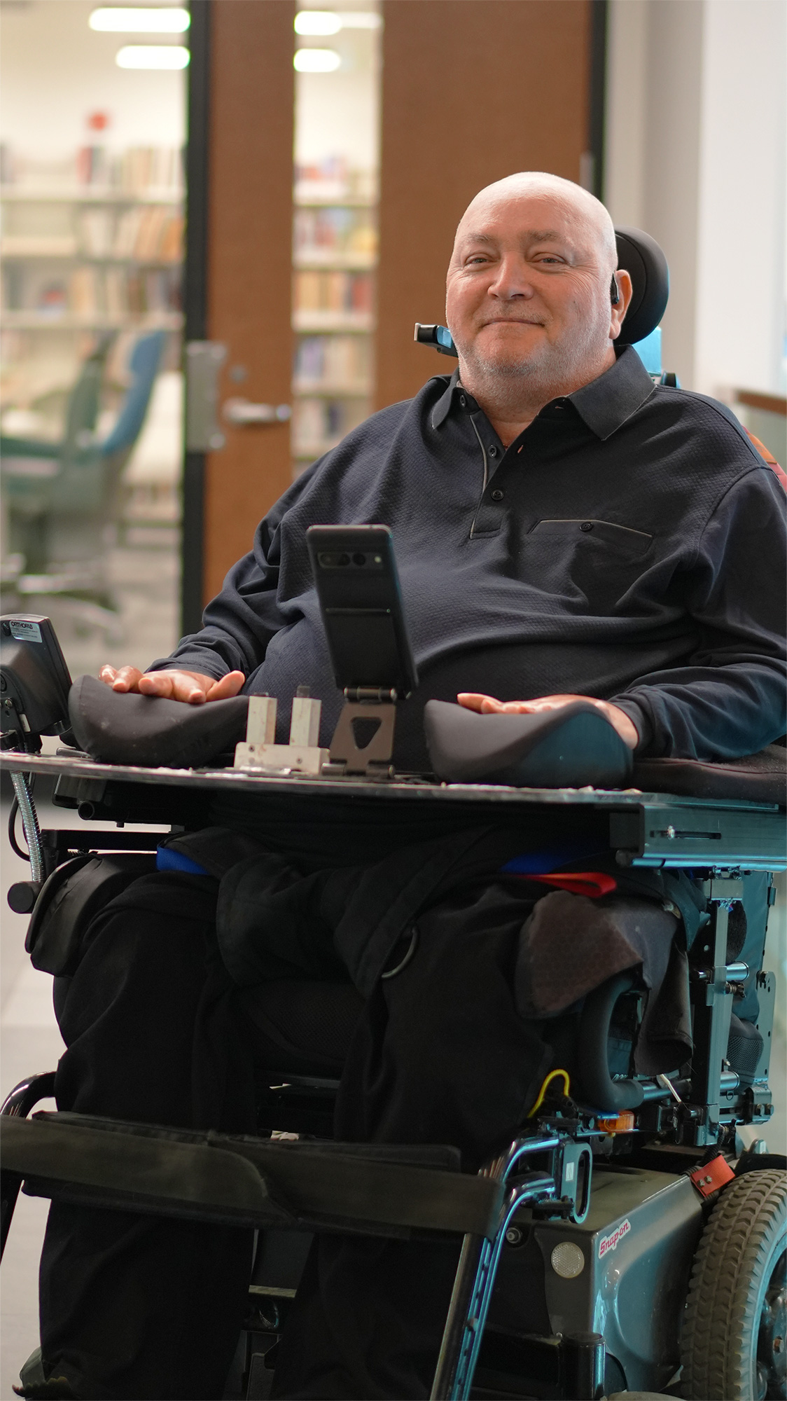 Stéphane est directeur de l’Association québécoise pour l’équité et l’inclusion postsecondaire, qui a pour mission de soutenir les étudiantes et les étudiants en situation de handicap dans la poursuite de leurs études supérieures. Il est lui-même retourné aux études en 2019 afin d’obtenir un diplôme d’études supérieures spécialisées alors qu’il était tétraplégique. Il a également été conseiller municipal à Lachute. Toutes les fois où il s’est rendu voter, il a remarqué les obstacles liés à l’accessibilité des lieux et à l’espace disponible pour les gens à mobilité réduite.